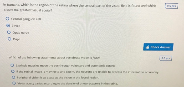 Solved Optic Nerve Question 5 The Greatest Visual Acuity Is Chegg Com